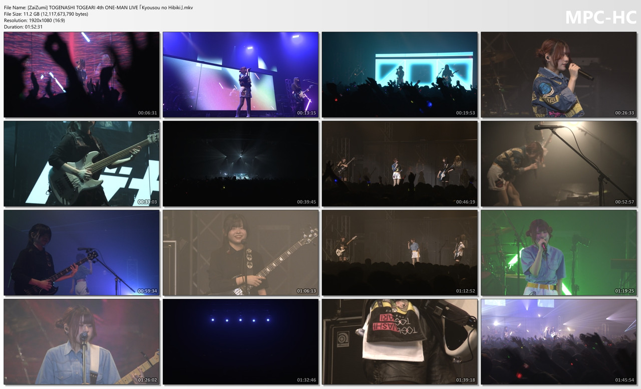 [ZaiZumi] TOGENASHI TOGEARI 4th ONE-MAN LIVE 「Kyousou no Hibiki」 (BDRip 1080p x265 10bit FLAC)